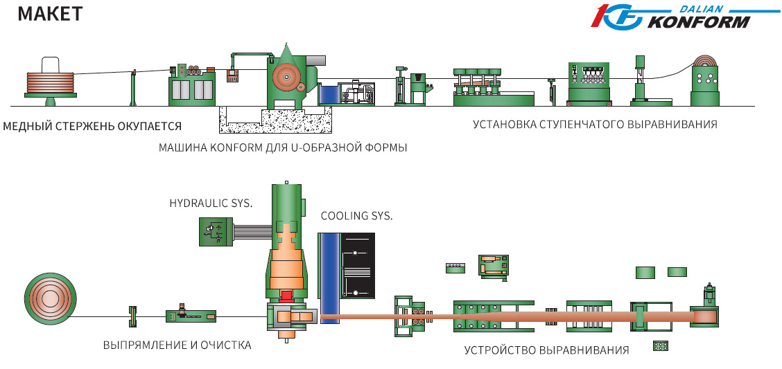 Линия непрерывной экструзии медных шин / полос