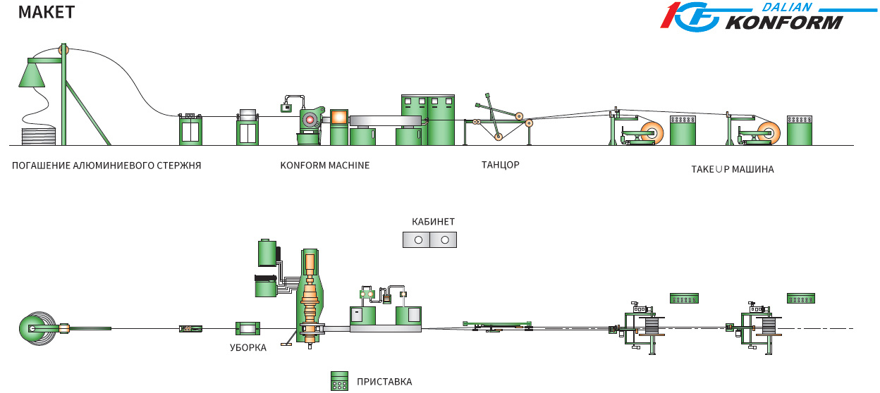 Линия непрерывной экструзии алюминиевого плоского провода / шинопровода / фасонного проводника